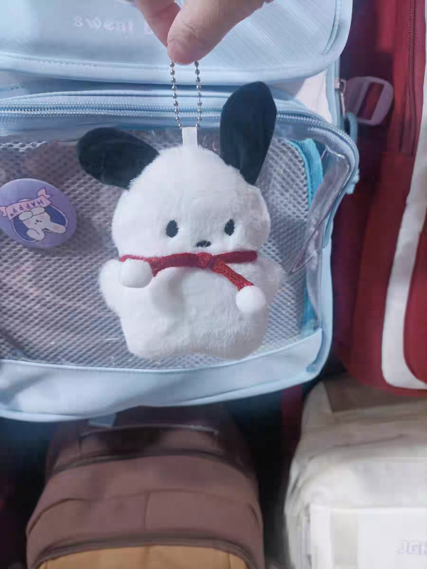 Incluye: 1 colgante de peluche de POCHACCO Y 2 pins aleatorios.